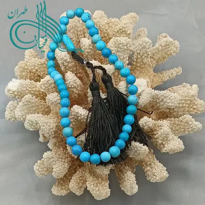 تسبیح فیروزه کرمانی عجمی با دقت و هنر دست سازندگانی ماهر ساخته شده و جلوهای از زیبایی طبیعی و فرهنگی ایران را در خود دارد.