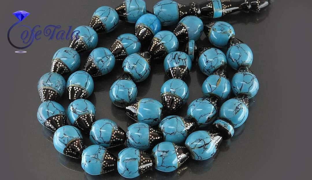 تسبیح فیروزه و یسر 33 دانه سوپر نقره