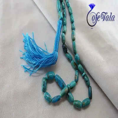 تسبیح فیروزه کرمانی 33 دانه رنگ شده مناسب خانم ها و آقایان می باشد و تقریبا ۱۵ گرم می باشد و ۱۷ سانتی متر است. شما می توانید این تسبیح فیروزه را از فروشگاه کافه سیلور خریداری نمایید.