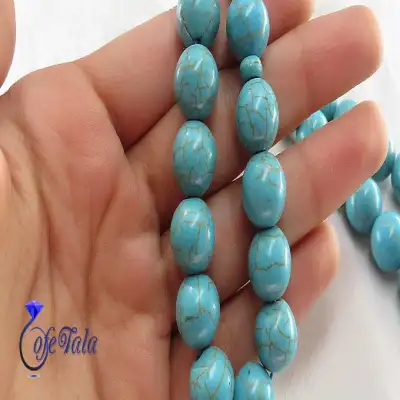 تسبیح فیروزه 33 دانه فیروزه سنتاتیک که مناسب خانم ها و آقایان می باشد و ۷۲ گرم وزن دارد و ۱۹ سانتی متر می باشد. این تسبیح ها از سنگ های طبیعی ساخته نشده اند و فقط از نظر ظاهری بسیار شبیه می باشد و تشخیص آن دشوار است.